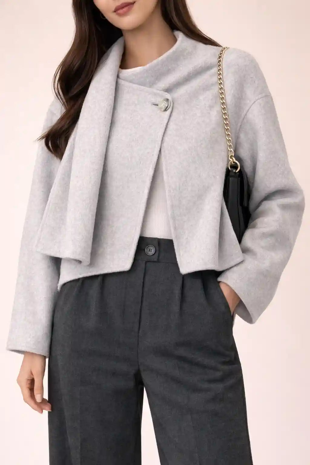 Its single‑button closure adds a minimalist yet stylish detail, while the tailored fit ensures a flattering silhouette across small and medium sizes. Versatile and chic, this coat pairs effortlessly with trousers, skirts, or dresses, making it a wardrobe essential.